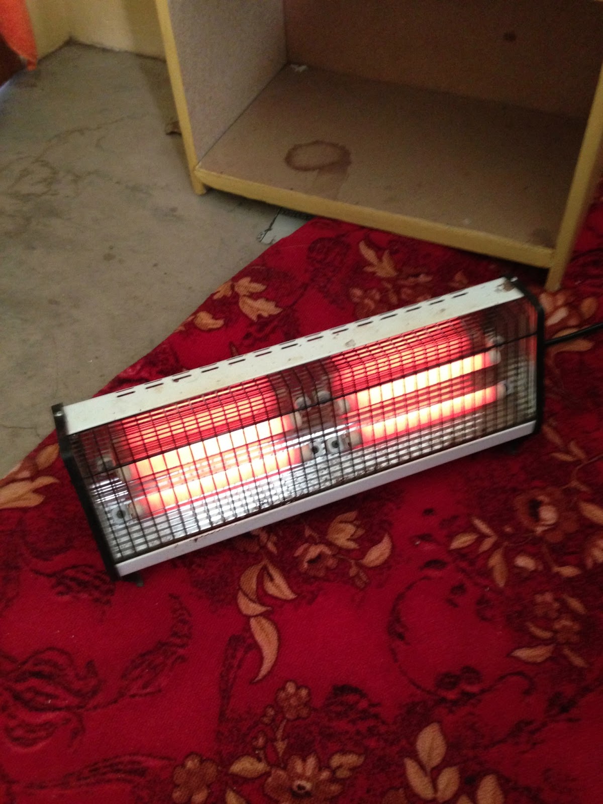 The heater in my room...The gas heater in our common room...the tools used for heat in the rondavels.
